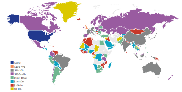 In 2024, the alternative financial industry facilitated USD 162 billion in transaction volume globally, with the largest portion - 140 billion - in peer-to-peer lending. AFS are transforming business models in numerous areas of finance to improve the satisfaction of the users, including the poor. The degree of adoption varies among countries (Figure 1), but in all cases, access to alternative financial services is the first step after a cash-based economy, and is the precursor to a full offering of traditional financial services for businesses and individuals.