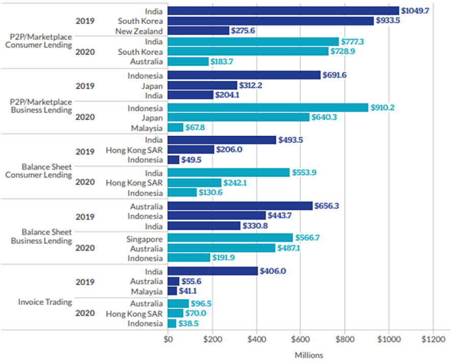 Source: The 2nd Global Alternative Finance Market Benchmarking Report., (p. 102), Ziegler, T. et al. (2021). University of Cambridge