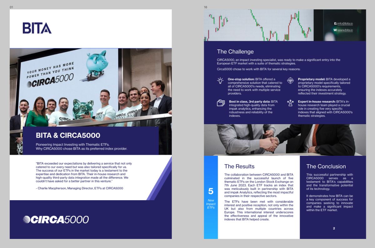 CIRCA5000, an impact investing specialist, was ready to make a significant entry into the European ETF market with a suite of thematic strategies. Circa5000 chose to work with BITA for several key reasons:
