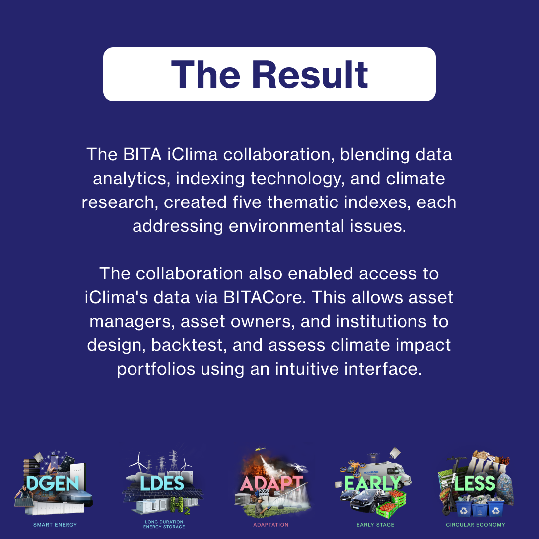 The BITA iClima collaboration, blending data analytics, indexing technology, and climate research, created unique indexes to address environmental issues and decarbonization.