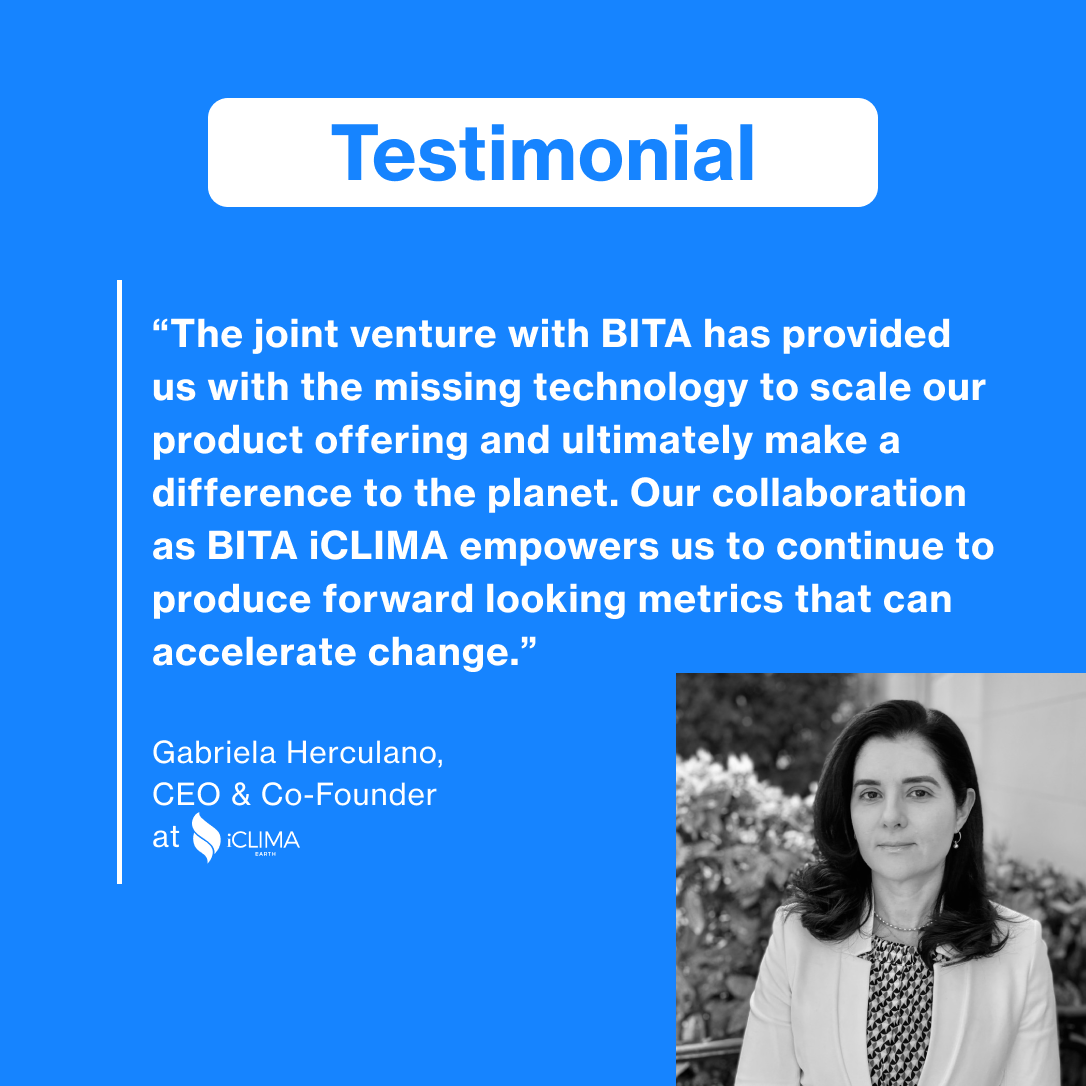 “The joint venture with BITA has provided us with the missing technology to scale our product offering and ultimately make a difference to the planet. Our collaboration as BITA iCLIMA empowers us to continue to produce tangible and forward looking metrics that can accelerate change.”