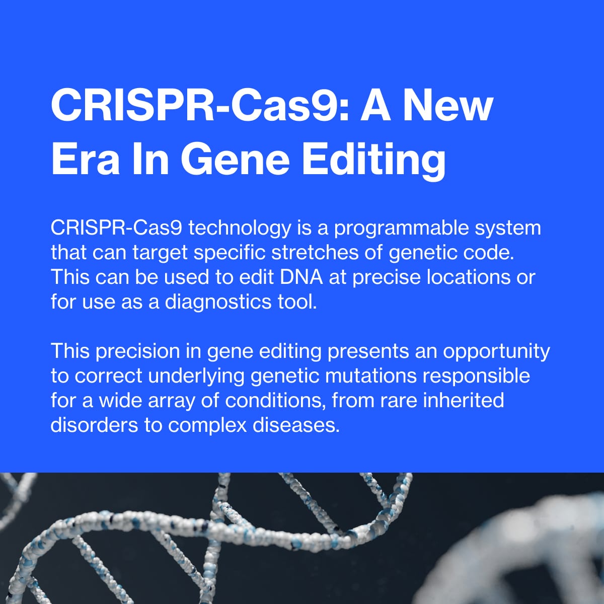 In January, the first-ever approved CRISPR-based therapy was announced. CASGEVY™, a CRISPR/Cas9 gene-edited therapy for the treatment of sickle cell disease and transfusion-dependent β-thalassemia arises out of the collaboration of CRISPR Therapeutics and Vertex Pharmaceuticals. It is approved in some countries for certain eligible patients with sickle cell disease or transfusion-dependent beta-thalassemia.